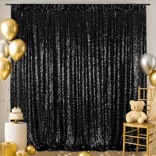 AIIKES Toile de fond noire et dorée à paillettes pour fête d'anniversaire, 3 x 3 m, 11-547
