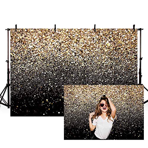 MEHOFOTO Toile de fond noire à paillettes dorées de 2,1 x 1,5 m pour bal de promo, ciel étoilé brillant, abstrait, pour fête d'anniversaire, mariage, enfants, nouveau-né, accessoires de studio de