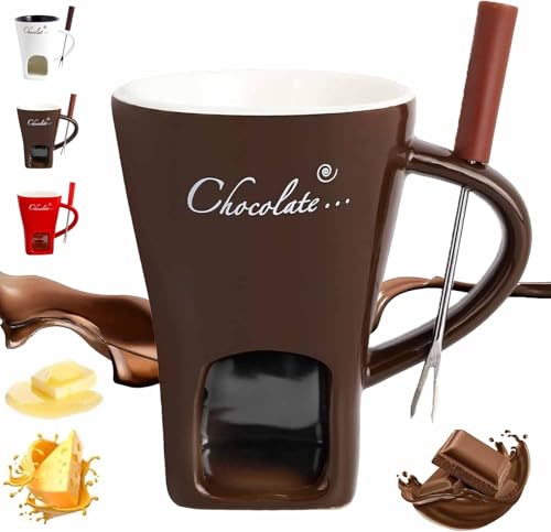 Gwezmxs Céramique Tasse Fondue au Chocolat avec Fourchette, Brun Fondue Chocolat Bougie, Appareil Fondue Chocolat, Fromage Fondue, Fondue Mug