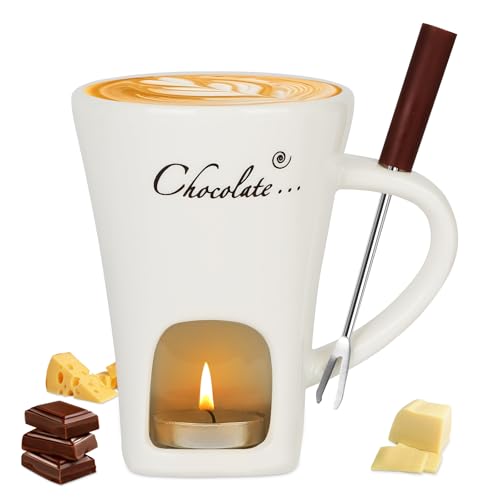 Mimoqk Chocolate Fondue Cup - Ceramic Melting Mug with Fork Candle, Personal Dessert, Fun Family Gathering, Easy Melt Chocolate, Dessert Fondue Set, for Home Holiday Party Celebration