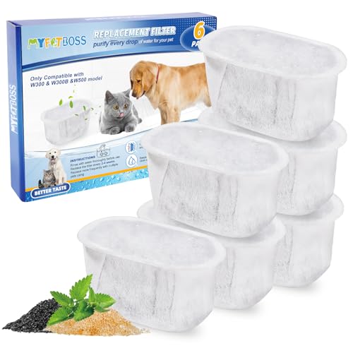 MyfatBOSS Lot de 6 filtres pour fontaine à eau pour chat W300/W500, compatibilité universelle avec Wopet 2L, clarté et hygiène durables pour vos amis à quatre pattes