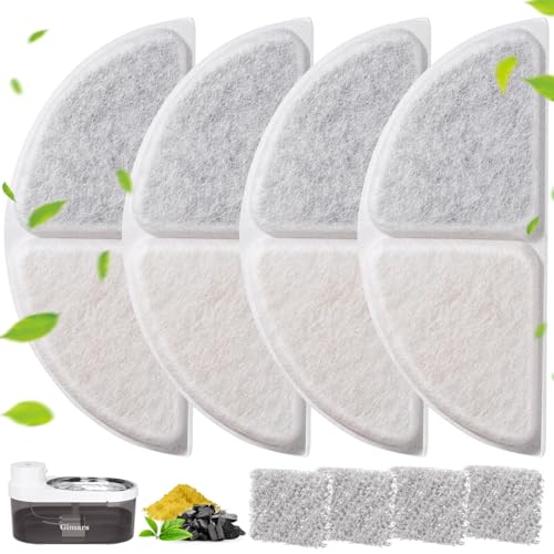 Gimars Filtres de Rechange pour Fontaine à Eau pour Chat sans Fil, Lot de 4 Filtres et 4 Éponge, Compatible avec Fontaine Gimars Modèle CYD008