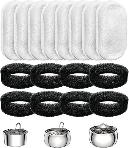 Filtres pour Fontaine à Eau pour Chat, Filtre de Remplacement Comprenant Un Filtre à Charbon 8 pièces et Une éponge en Mousse 8 pièces