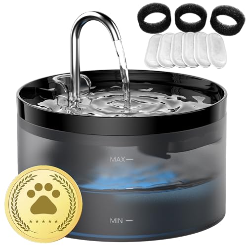 Fontaine à Eau Chat GIOTOHUN, 2L, 64 onces, Triple Filtration, Silencieuse, Noir, pour Chats