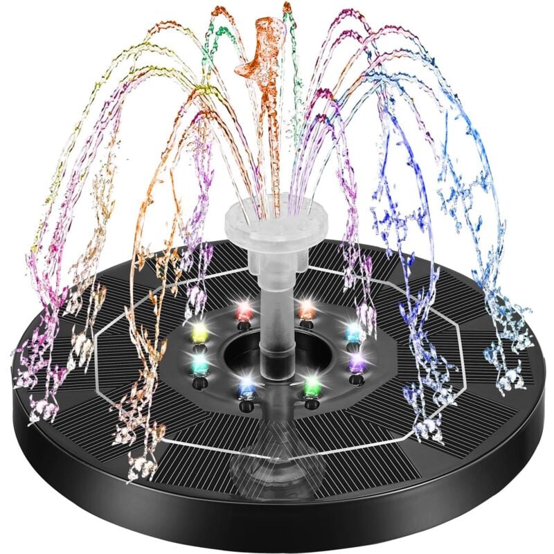 LEDGLE Fontaine Solaire Pompe, 2.5W Fontaine Bassin Cascade 7 Différents Types d'eau, Fontaine Flottante pour Exterieur, Jardin, D'Étang, Aquarium, Bain d'oiseaux, Étang, Fontaines
