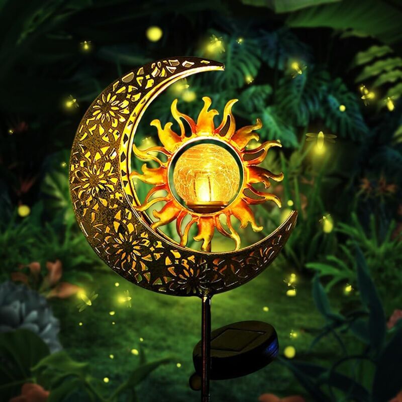 Lampes Solaires de Jardin, Fée Decoration Jardin Exterieur, Métal Lune LED Boule de Verre Lumière Solaire Exterieur, IP65 Étanche, Lampe solaire pour
