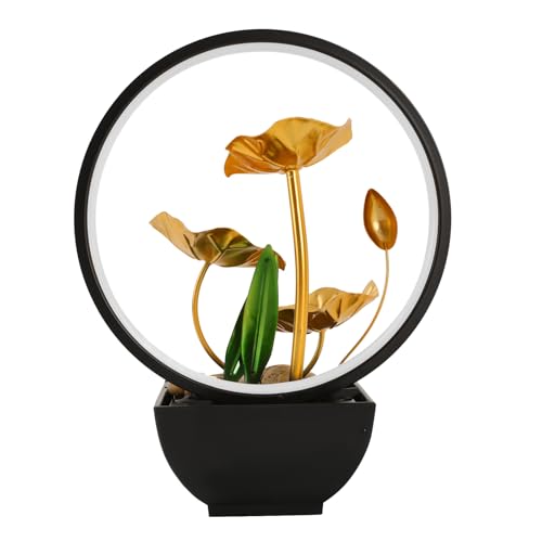 CHYIFSHIY Fontaine de table d'intérieur en forme de feuille de lotus dorée avec lumières LED, aquarium en verre, cascade décorative pour la maison, le bureau, le salon, design zen moderne