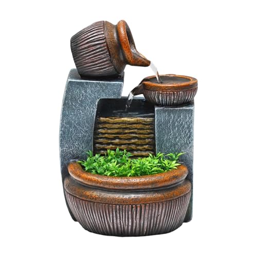 Fontaine de Jardin - Fontaine décorative - Fontaine d'intérieur - avec lumière LED - 230 V - pour Jardin, étang de Jardin, terrasse, Balcon - Très décorative