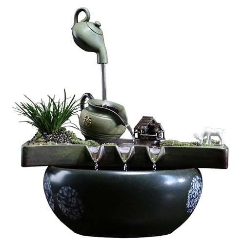 uadyie Fontaine De Bureau Fontaine à Eau décorative Porte-Bonheur de Style Chinois, décoration créative en céramique for Bureau, Salon Petite Fontaine D'intérieur