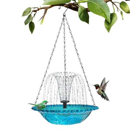 HshDUti Fontaine solaire à suspendre pour oiseaux, fontaine solaire en cascade à suspendre, bain d'oiseaux suspendu avec eau, fontaine décorative pour jardin, cour, terrasse, jardin, pelouse