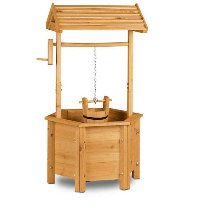 Relaxdays Fontaine décorative plantable pour Jardin, Seau et manivelle, Bois Marron, 114x56x56 cm