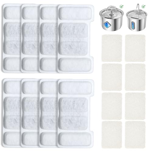Zivacate Filtre Fontaine Chat - 16 Packs Filtre Fontaine Eau Chat, 8 Filtres à Charbon + 8 Éponges, Triple Système de Filtration, Filtre à Eau pour Zivacate 2.2L & 2.8L