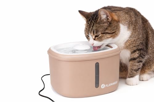 Fontaine a Eau Chat - Flamingo Finto Beige - 2,5L - Plastique - Pompe Super silencieuse arrêt Auto - Filtre Charbon Actif et résine - indicateur Lumineux