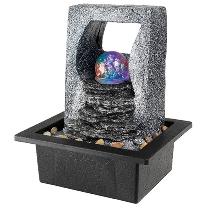 Fontaine à eau décorative intérieure et extérieure avec LED RGB et boule de cristal (avec câble de 2 mètres)