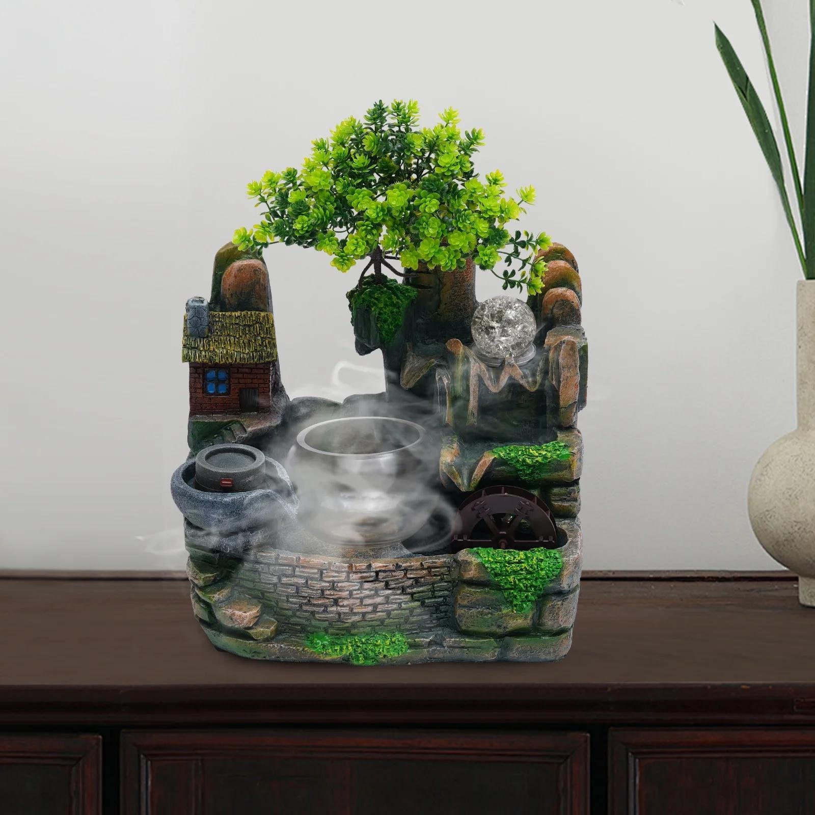 Fontaines de Table Fontaine de Table 7,48 Pouces de Haute résine 4 Couches Fontaine de Bureau Fontaine d'eau intérieure Paysage Aquatique Bureau décoration de la Maison décoration exquise