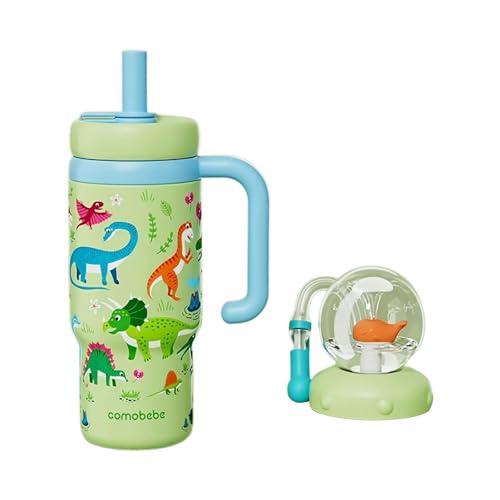 Gobelet fontaine baleine en acier inoxydable de 710 ml avec poignée – Deux couvercles, avec effet fontaine amusant, bouteille d'eau isotherme avec poignée, tasse à boire avec jet de baleine pour