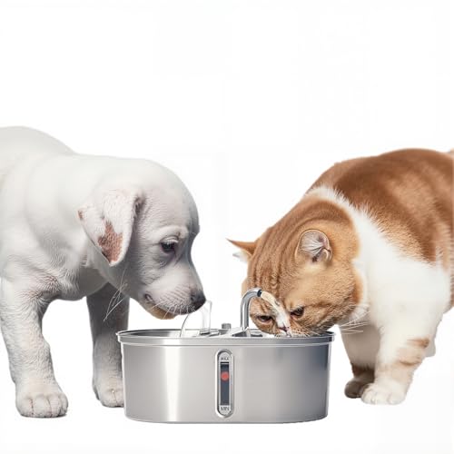 GarveeMore 3,2L Fontaine à Eau pour Chats, Automatique Fontaine à Eau en Acier Inoxydable avec fenêtre de Niveau d'eau, Filtre à Carbone Activé, USB Silencieuse Double Sortie Fontaines pour Chat et Ch