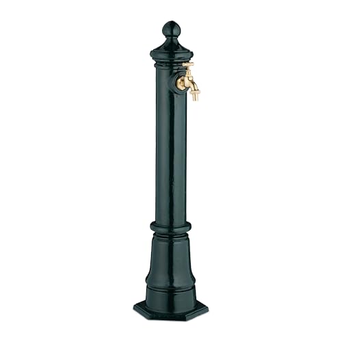 Relaxdays Fontaine extérieure pour Le Jardin ou la terrasse, Robinet, Design Antique, HLP 80 x 18 x 20,5 cm, Vert foncé