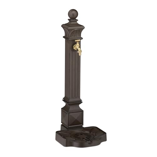 Relaxdays Fontaine extérieure de Jardin, avec Robinet et bac, HxLxP : 82 x 29 x 33 cm, Aussi pour la terrasse, Marron