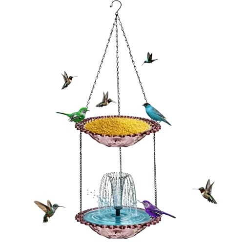 Générique Fontaines De Bain d'oiseaux Suspendues – Plateau d'alimentation pour Oiseaux Suspendu À Énergie Solaire | Bain d'oiseaux Solaire avec Fontaine pour Jardin, Cour, Terrasse, Balcon, Pelouse