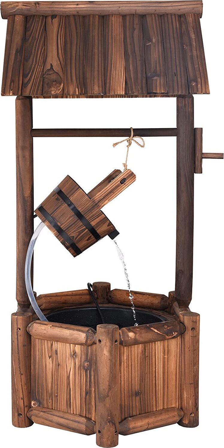 COSTWAY Fontaine de jardin en bois de sapin, Fontaine d'eau avec pompe électrique, fontaine rustique à souhait Fontaine décorative Fontaine à fleurs pour terrasse, jardin & arrière-cour, brun