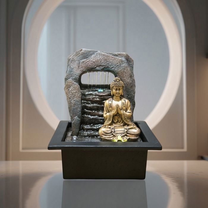 ZEN Fontaine LED dintérieur avec statuette Bouddha Praya - Noir