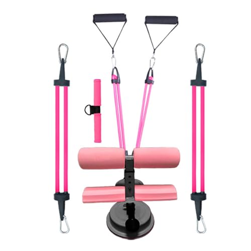POPOTI Foot Pedal Exercise Band, Sit Up Bodybuilding Expander Rally Elastic Rope 4-Tube Pull Rope Fitness Accessories for Abdomen Waist Arm Training Resistance Band (Pink)