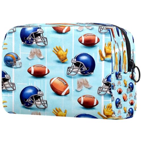 Trousse de maquillage pour femme, casque de football américain, gants et produits de toilette de voyage, grande pochette de maquillage pratique avec fermeture éclair, multicolore, 18.5x7.5x13cm