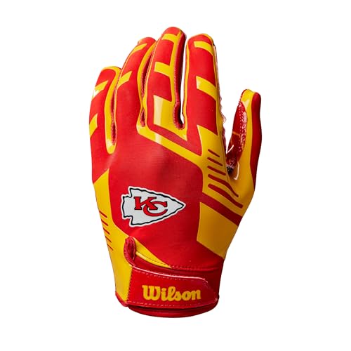 WILSON Youth NFL Stretch Fit, Gants de Football Américain, Ajustement et Prise en Main Sûre, Tissu Respirant et Design Energique, Équipe: Kansas City Chiefs, Couleur: Rouge/Jaune, Taille Jeunesse