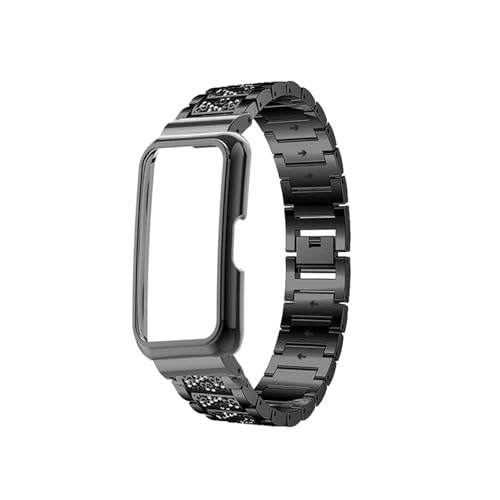 Bracelet En Diamant Adapté For Huawei Band 8/7/6 Bracelet De Protection En Métal For Huawei Band 6 Cover Fit For Honor Band 7 6 Bracelet De Montre(Black,For Honor Band 6)