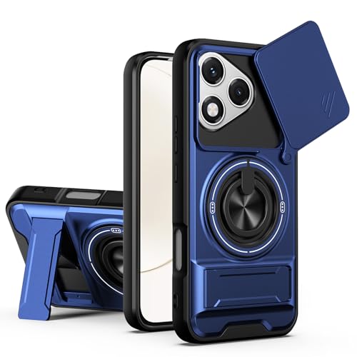 HAONANDE Coque pour Honor 400 Lite 5G avec 360 Anneau Support magnétique, Étui Militaire Antichoc Protection avec Cache caméra Coulissant Housse Compatible avec MagSafe Bleu