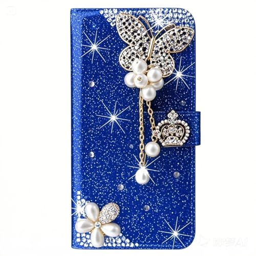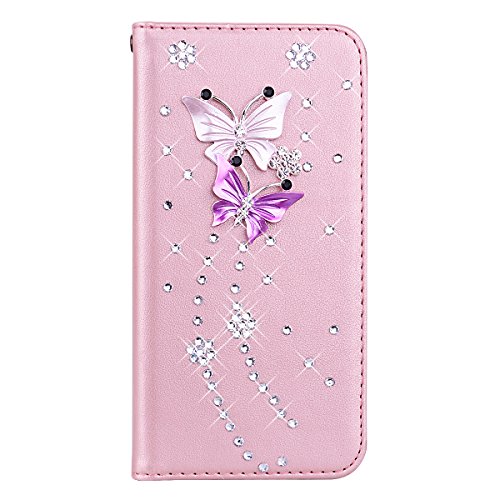 BLOTECH Bling Portefeuille Wallet pour Honor 400, Housse Rabat PU Cuir Flip Magnétique Etui Or Rose Motif Strass Diamant Butterflies Fleurs PU Leather Etui pour Honor 400