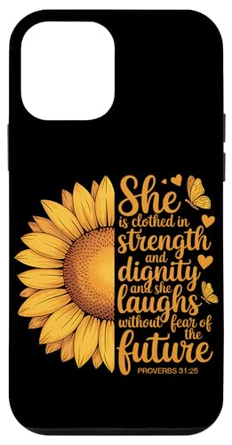 Elle est vêtue de Force (Proverbes 31, Tournesol chrétien) Coque pour iPhone 12 Mini