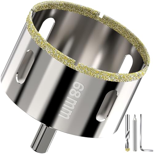 Scie cloche diamantée 68mm - Foret trépan diamant brasé sous vide pour granit, marbre, verre, céramique, porcelaine et carrelage dur - Foret de centrage inclus