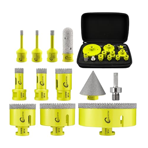 SANLEETEK Foret Diamant Carrelage Kit - 12pcs (6/6/8/20/25/35/50/68/110mm+20mmForets à Fraiser+50mm Mèches Chanfrein+Adaptateur) Dentelé pour Carrelage Céramique Porcelaine Marbre Granit M14 Filetage