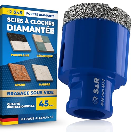 S&R Scie Cloche Carrelage Diamant 45mm M14 – Trépan Diamant Carrelage Meuleuse d’Angle brasé Sous Vide– Foret Diamant Carrelage Mèche pour Grès Cérame, Porcelaine, Granit, Marbre Verre