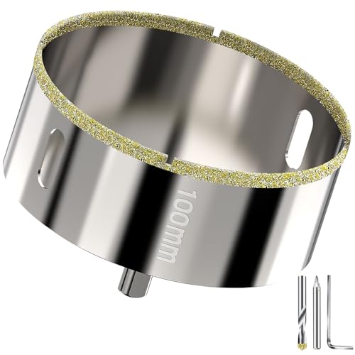 Scie cloche diamantée 100mm - Foret trépan diamant brasé sous vide pour granit, marbre, verre, céramique, porcelaine et carrelage dur - Foret de centrage inclus