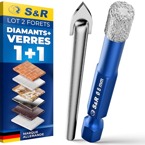 S&R Forets Diamant 8mm - Lot de 2: 1 Foret Diamant + 1 Foret en Carbure Verre pour Céramique Grés Marbre Carrelage Céramique Verre Granit