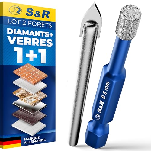 S&R Forets Diamant 6mm - Lot de 2: 1 Foret Diamant + 1 Foret en Carbure Verre pour Céramique Grés Marbre Carrelage Céramique Verre Granit