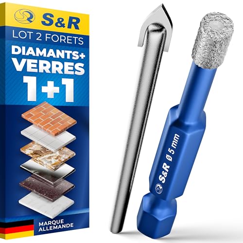 S&R Forets Diamant 5mm - Lot de 2: 1 Foret Diamant + 1 Foret en Carbure Verre pour Céramique Grés Marbre Carrelage Céramique Verre Granit