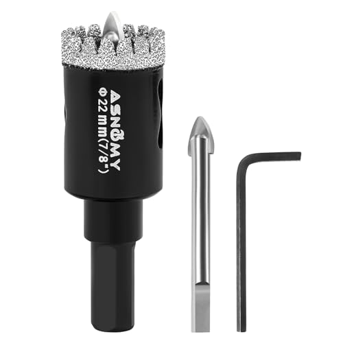 ASNOMY Scie Cloche Diamantée de 22 mm avec Mèche Pilote, Foret Trépan Diamanté Denté, Scie Cloche Diamant pour carrelage, Verre, porcelaine, pierre de granit