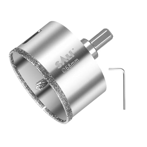 SALI Foret diamanté de 68 mm avec foret de centrage, foret à verre avec revêtement diamant, couronne de forage creuse en acier 45# pour percer dans la céramique, la porcelaine, le verre, le marbre