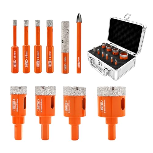 BGTEC Foret Diamanté Scie Cloche Diamantée Kit,10 pièces 5/6/6/8/20/25/28/35mm avec queue hexagonale+6mm Carbure Drill+10mm Milling Finger Bit for Granite Marble Porcelain Tile Ceramic