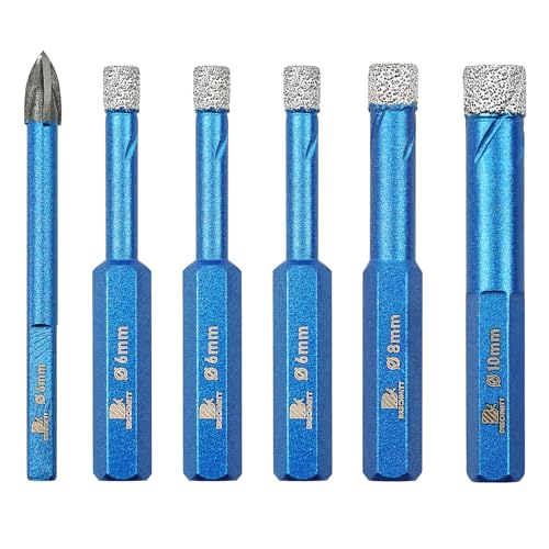 Foret diamanté à sec BRSCHNITT - Foret à carrelage 6/6/6/8/10+6mm - Couronne de scie cloche pour céramique, granit, porcelaine, carrelage, grès fin, maçonnerie, marbre - Tige hexagonale (lot de 6