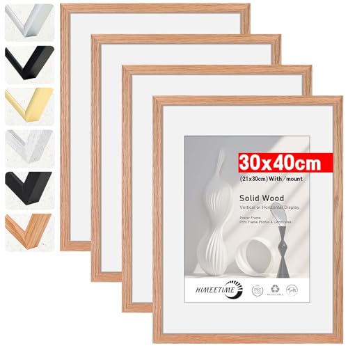 HIMEETIME® 4x Cadre photo 30x40 cm Chêne. En bois de chêne massif,image avec présentoir passe-partout A4 (21x30cm) Ou 4 photos au format 10x15 cm