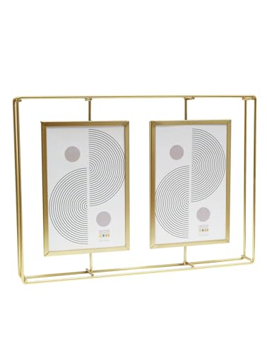 Deknudt Frames - Cadre photo - métal doré - épuré - vintage - pour 2 photos en format 10x15 cm - accrocher ou poser