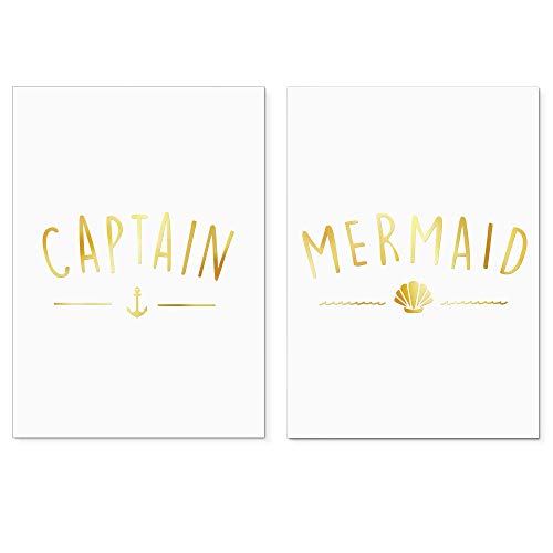 Homelov Lot de 2 affiches de qualité supérieure - Format A3 - 30 x 40 cm - Papier 100 % sans bois et impression d'art de qualité supérieure - Papier mural et autocollant inclus - Captain Mermaid Real Gold