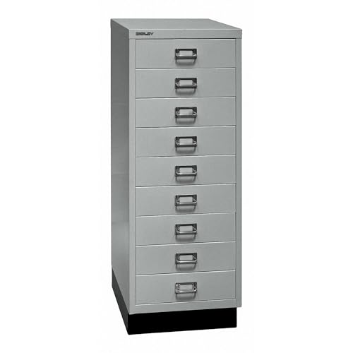 BISLEY MultiDrawer, série 39 avec Socle, Format A3, 9 tiroirs, Métal, Argent 355, 43,2 x 34,9 x 94 cm