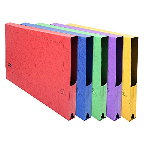 Exacompta - Réf. 4780Z - Carton de 25 chemises poche en carte lustrée 225g/m² - Soufflet de 32 mm - Dimensions extérieures : 45,5x32,5cm - Pour documents à classer au format A3 - 5 couleurs assorties