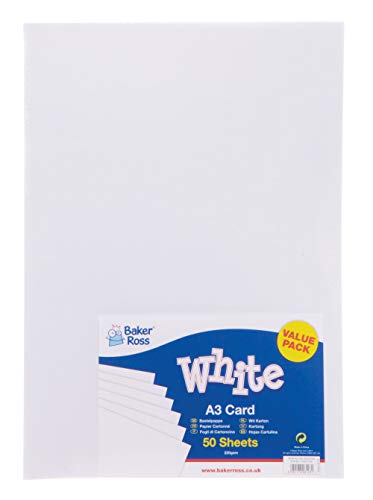 Baker Ross Lot de 50 feuilles de papier cartonné Blanc Format A3 220 g/m²